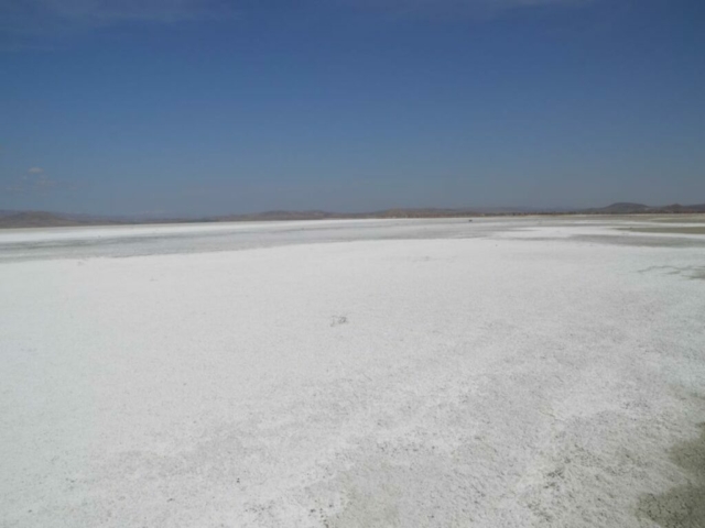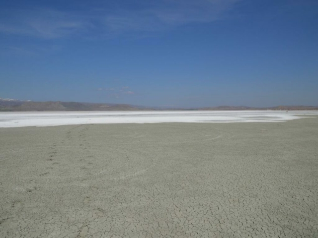 Auf unserem Weg Richtung Iranischer Grenze hatten wir uns schon auf langweilige Fahrtage ohne besonders Sehenswertes eingestellt. Umso glücklicher waren wir, dass wir zuerst ständig den ruhenden Vulkan Erciyes (3916m ) sahen und dann tauchte unterwegs auf einmal der Salzsee Tuzla Gölü auf. – Wobei ich mich ja Frage, ob man es See nennen kann, wenn kein Wasser da ist? – Bei strahlendem Sonnenschein wurden wir extrem von der weißen Salzschicht geblendet und die Luft darüber schwirrte, als ob es sehr heiß wäre. Wirklich interessant dies mal von Nahem zu sehen.