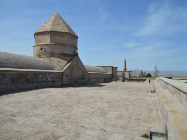 Kurz darauf haben wir erneut Glück, als am Straßenrand plötzlich eine riesige Karawanserei steht. Die Sultanhani Karawanserei wurde im Jahr 1229 gegründet und wurde aufgrund der zentralen Lage an der historischen Seidenstraße schnell zur größten Karawanserei in Kleinasien. Gleich beim betreten kommt ein alter Mann auf uns zu und gibt uns eine Privatführung. Trotz sprachlicher Barrieren (er konnte nur Türkisch) konnte er uns sehr viel zeigen und per Körpersprache erklären. Wir durften jeden Raum betrachten und sowohl in die Moschee in der Mitte, als auch auf das komplette Dach. Die steilen und teilweise nicht mehr vollständigen Treppen waren wirklich abenteuerlich, aber wir konnten unser Glück kaum fassen.
