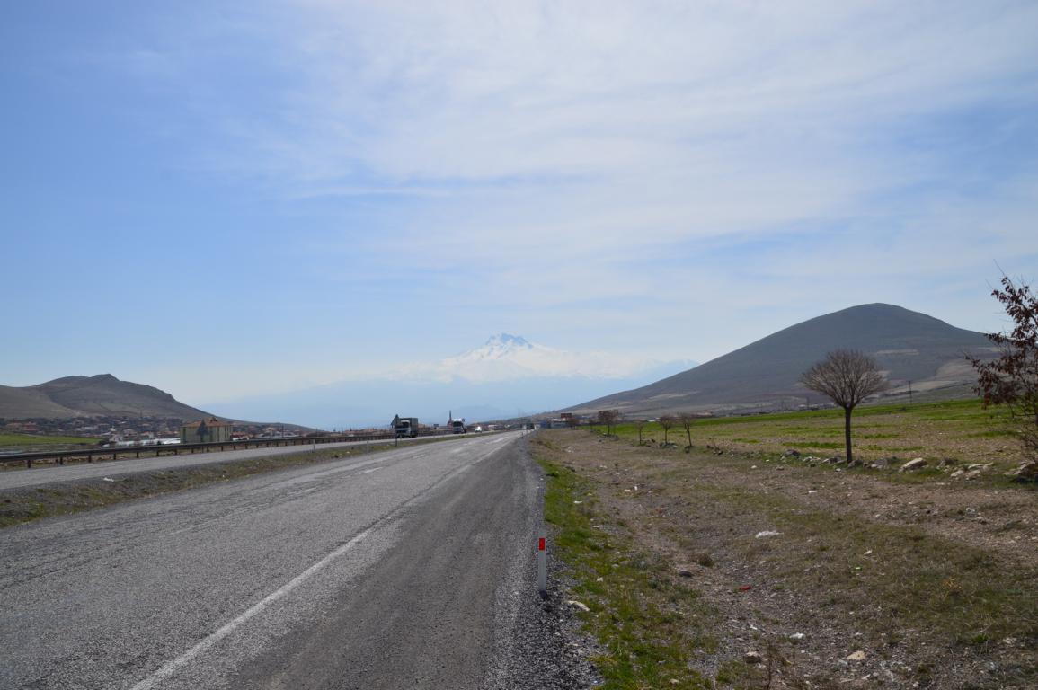 Auf unserem Weg Richtung Iranischer Grenze hatten wir uns schon auf langweilige Fahrtage ohne besonders Sehenswertes eingestellt. Umso glücklicher waren wir, dass wir zuerst ständig den ruhenden Vulkan Erciyes (3916m ) sahen und dann tauchte unterwegs auf einmal der Salzsee Tuzla Gölü auf. – Wobei ich mich ja Frage, ob man es See nennen kann, wenn kein Wasser da ist? – Bei strahlendem Sonnenschein wurden wir extrem von der weißen Salzschicht geblendet und die Luft darüber schwirrte, als ob es sehr heiß wäre. Wirklich interessant dies mal von Nahem zu sehen.