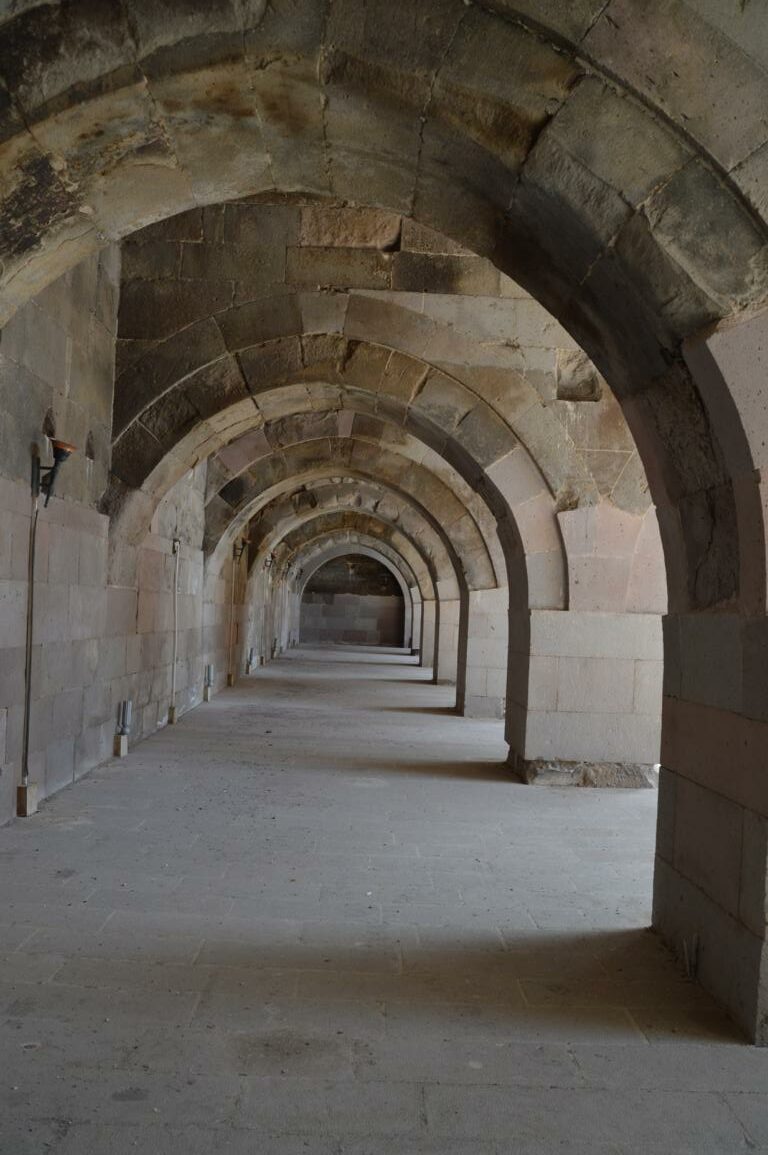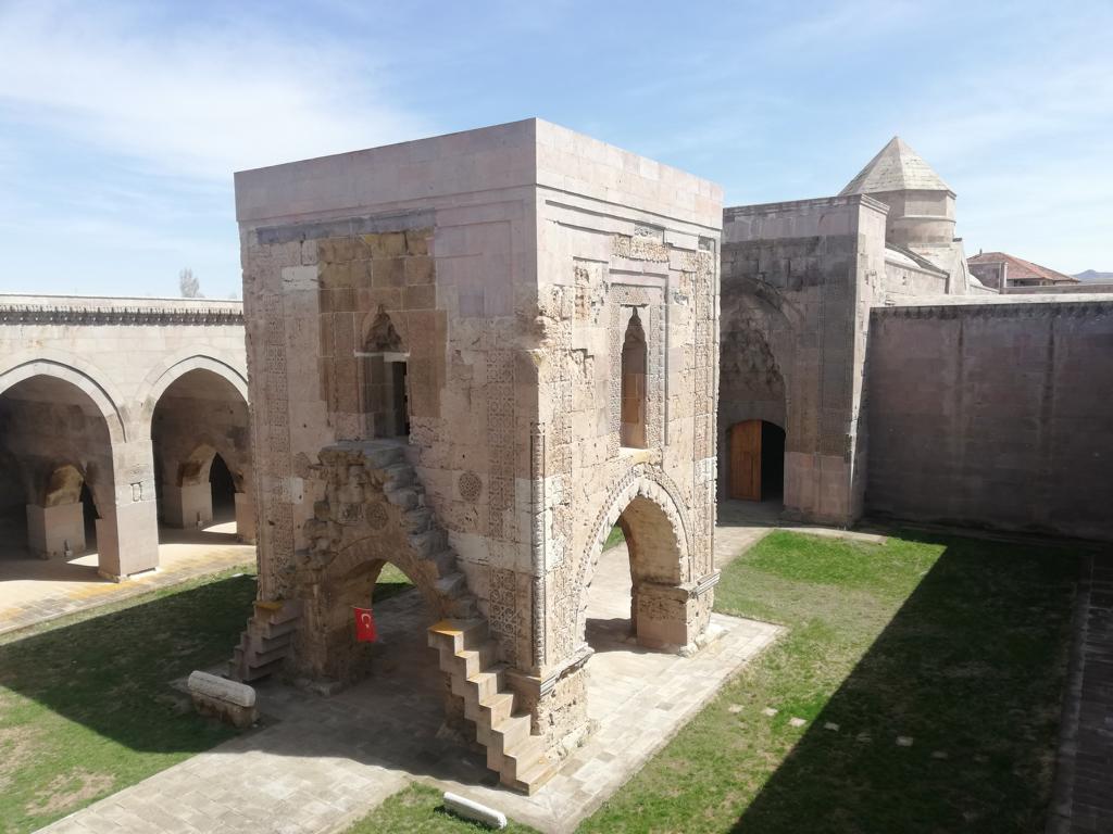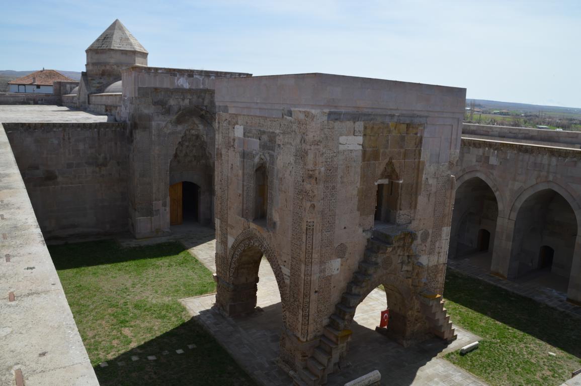 Kurz darauf haben wir erneut Glück, als am Straßenrand plötzlich eine riesige Karawanserei steht. Die Sultanhani Karawanserei wurde im Jahr 1229 gegründet und wurde aufgrund der zentralen Lage an der historischen Seidenstraße schnell zur größten Karawanserei in Kleinasien. Gleich beim betreten kommt ein alter Mann auf uns zu und gibt uns eine Privatführung. Trotz sprachlicher Barrieren (er konnte nur Türkisch) konnte er uns sehr viel zeigen und per Körpersprache erklären. Wir durften jeden Raum betrachten und sowohl in die Moschee in der Mitte, als auch auf das komplette Dach. Die steilen und teilweise nicht mehr vollständigen Treppen waren wirklich abenteuerlich, aber wir konnten unser Glück kaum fassen.